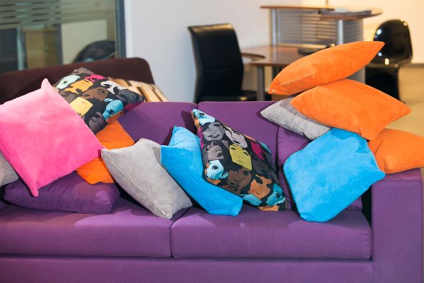 Pai cum sa colorezi peretii? M-ar omora proprietara :)) Plus ca mobila e deja prin casa, poti face asta cand inchiriezi ceva nemobilat. Perneee daaaa multe si cat mai colorate 🙂
