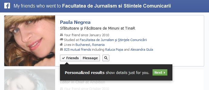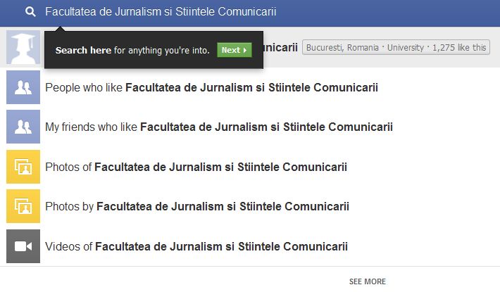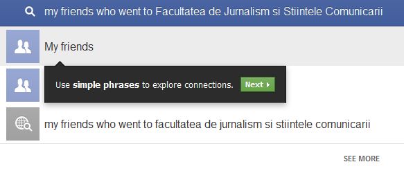 Daca nu ati auzit de Facebook Graph Search, atunci e momentul. Ce este? Un motor de cautare avansat, pentru Facebook, in colaborare cu Bing, unde vei putea cauta combinatii de informatii publice din ultimii 8 ani (de exemplu: Friends who visited Brasov).