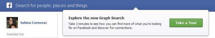 Am apasat pe „Turn on Graph Search” si apoi am inceput turul pentru a vedea cum isi prezinta Facebook noua modificare.