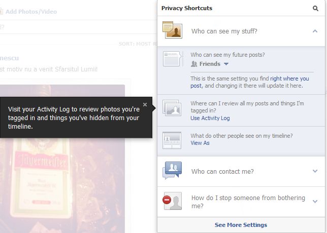 Daca pana acum nu gaseati chiar usor locul in care sa schimbati setarile de privacy, iata ca Facebook le aduce mai in fata si pot fi accesate fara sa iesim din pagina in care ne aflam. Multe detalii gasiti aici si, mai ales, aici.