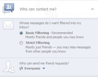 Apoi puteti alege cine va poate da mesaje si cine va poate trimite o cerere de prietenie. Atentie, mesajele private care nu sunt de la cei din lista voastra apar la „Others”.