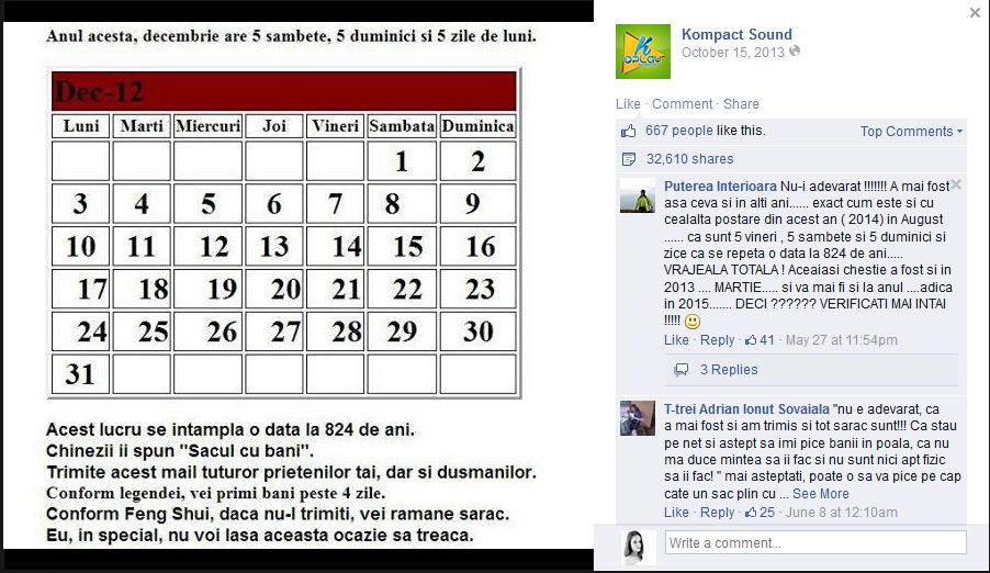 E o postare din 2013 si se pare ca pe 19 octombrie multi oameni au fost bogati. Putini au observat anul postarii si faptul ca in decembrie 2014 nu se mai repeta istoria, asa ca numarul de share-uri a crescut exponential.