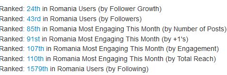 Eu ma bucur sa fiu in acest top, nu ma asteptam, dar o sa incerc sa ii acord mai multa atentie lui Google Plus. Voi il folositi?