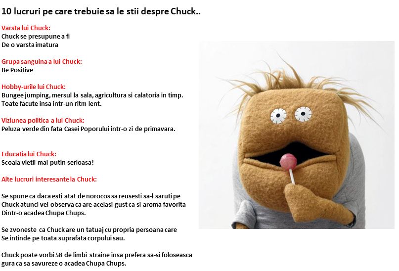 Filozofia asta de viata mi-a fost amintit de Chuck, noul personaj Chupa Chups Romania. Cica nu ai cum sa stai serios cand ai o acadea in gura. Adevar! Ar fi cam complicat si imposibil 🙂 Imi place foarte mult cand brandurile fac ceva inovativ si acesta este unul dintre cazuri.